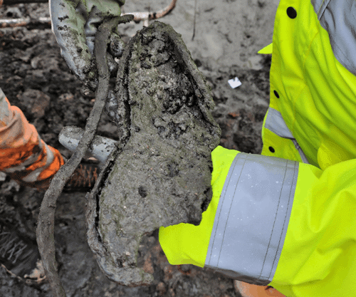 The leather was uncovered, along with pottery and fish bones, ahead of works to build a large attenuation tank, part of flood prevention measures being installed at the site. At about 2-3 metres below sea level, the site is a unique opportunity to find out what life was like for residents over 500 years ago.