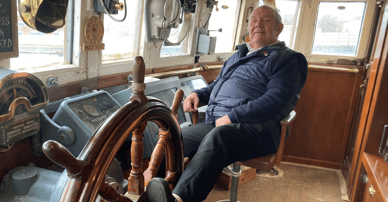 Dennis Avery, the Tiger’s longest serving skipper of 8 years, paid a visit to the Scottish Maritime Museum to fulfil the wish of a lifetime. The RNLB TGB came to Dennis’ rescue back in 1968 when the Ross Puma was shipwrecked off Little Rackwick Bay, on the Orkney Islands.