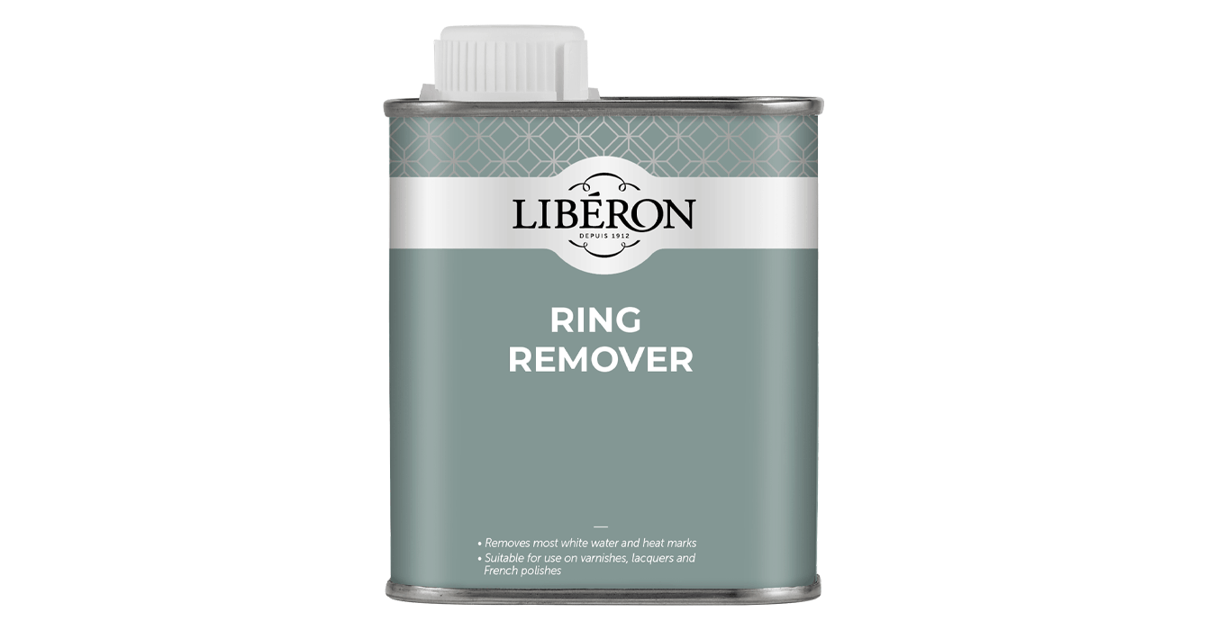 Firstly, you will need Liberon Ring Remover, which is suitable for use even on highly polished surfaces, including French polishes, lacquers, varnishes and modern hard finishes. Shake the container well before use, then apply it using a clean, lint-free cotton cloth, and rub vigorously over the mark, going with the grain, until the damage is removed. Then buff with a clean, dry cotton cloth. For badly marked surfaces, Liberon Ring Remover may be applied using Ultrafine Steel Wool (grade 0000) and then buffed with a cotton cloth. It’s a good idea to test the product on a spare surface or inconspicuous area for compatibility and end result.