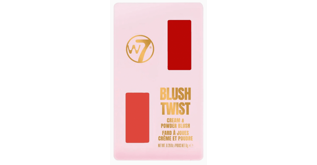 The W7 Blush Twist blush duos are innovative blusher compacts featuring pigmented cream and powder formulas in perfectly paired shades. The duo are designed to layer, build, and blend for striking pops of colour.